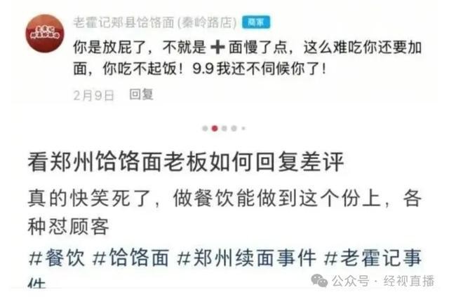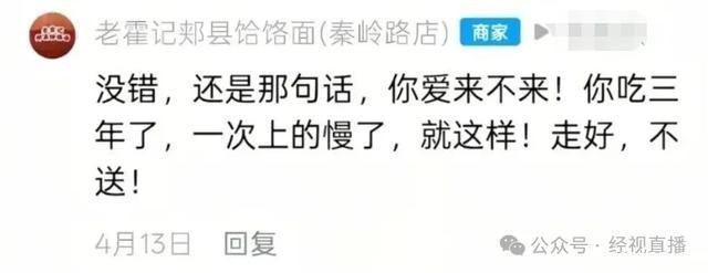 该负责人表示,做生意本就应当诚信经营、与人为善。“七人吃面事件”发生后,老霍记郏县饸饹面秦岭路店不仅缺失诚信,还对网友的评论强硬对抗,致使众多网友都不愿前往秦岭路消费。“他这种情况太不妥当了,还辱骂网友,我认为他的店就应该关门。”