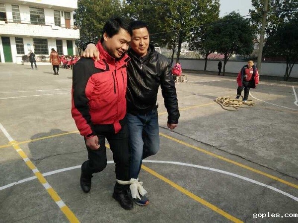 在一番激烈角逐后,孩子们的活动告一段落了,接下来是有由学校工会组织的老师趣味运动会。和孩子们一样,老师们也有几个项目,“两人三足”、“心心相印(背夹球)”、“拔河比赛”,活动同样精彩纷呈,全校十五名教师齐齐参加活动。一上午的活动让美丽宁静的校园顿时变成了欢乐的海洋。