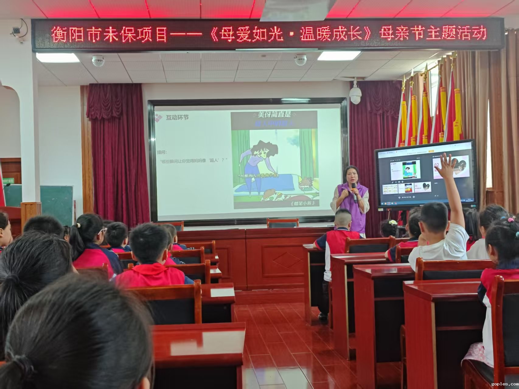 5月9日下午,随着上课铃声响起,同学们怀揣期待,有序步入活动场地,一场关于爱与感恩的旅程就此启程。暖场互动环节,通过母亲节版猜成语游戏,瞬间点燃现场气氛。引导提问"哪些瞬间让你觉得妈妈像超人"?"激发了学生们的情感共鸣,大家纷纷回忆起妈妈的温暖瞬间。
