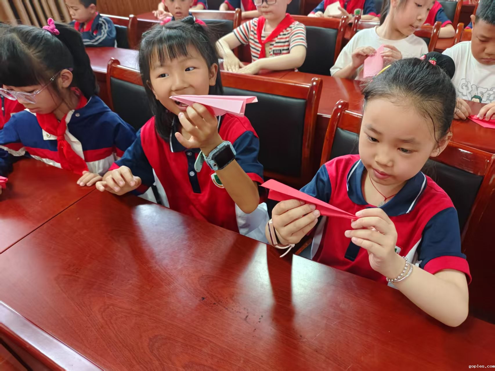 "纸飞机传心声"环节,学生们用彩纸折飞机,写下对妈妈的心里话,或匿名或署名,将深深的爱与感恩寄托其中。部分同学勇敢上台朗读,教师适时总结,强调"爱要勇敢说出来"。