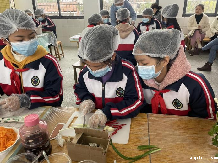 社团指导老师充分利用劳动基地成果,组织社团的成员们开展“‘蒜’出美食之味,‘葱’享劳动之美”学做凉拌菜活动。活动设置了“辨葱蒜之形”、“忆劳动之甜”、“知葱蒜之用”、“品采择之乐”、“体切蒜之味”、“调美食之料”、“葱享劳动之美”等环节,让孩子们在动手中学会了辨别大蒜、韭菜、葱等实物,通过回忆葱、蒜的种植过程,感受作物生长的奇妙旅程,在最后的“葱享劳动之美”环节,社团邀请了一部分老师和同学,以“棒棒糖投票”的方式,选出自己心中的“美味之最”。课堂现场气氛热烈,每个孩子的脸上都洋溢着劳动后获得的幸福感和成就感。