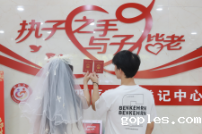 此外,该活动还融合了婚俗文化宣传。现场设置了七夕文化讲解及简约婚礼倡议签名墙,引来新人驻足聆听、提笔参与,助力新人树立“重登记、轻仪式”的文明婚恋观。七夕当日共有46对新人在此完成登记。