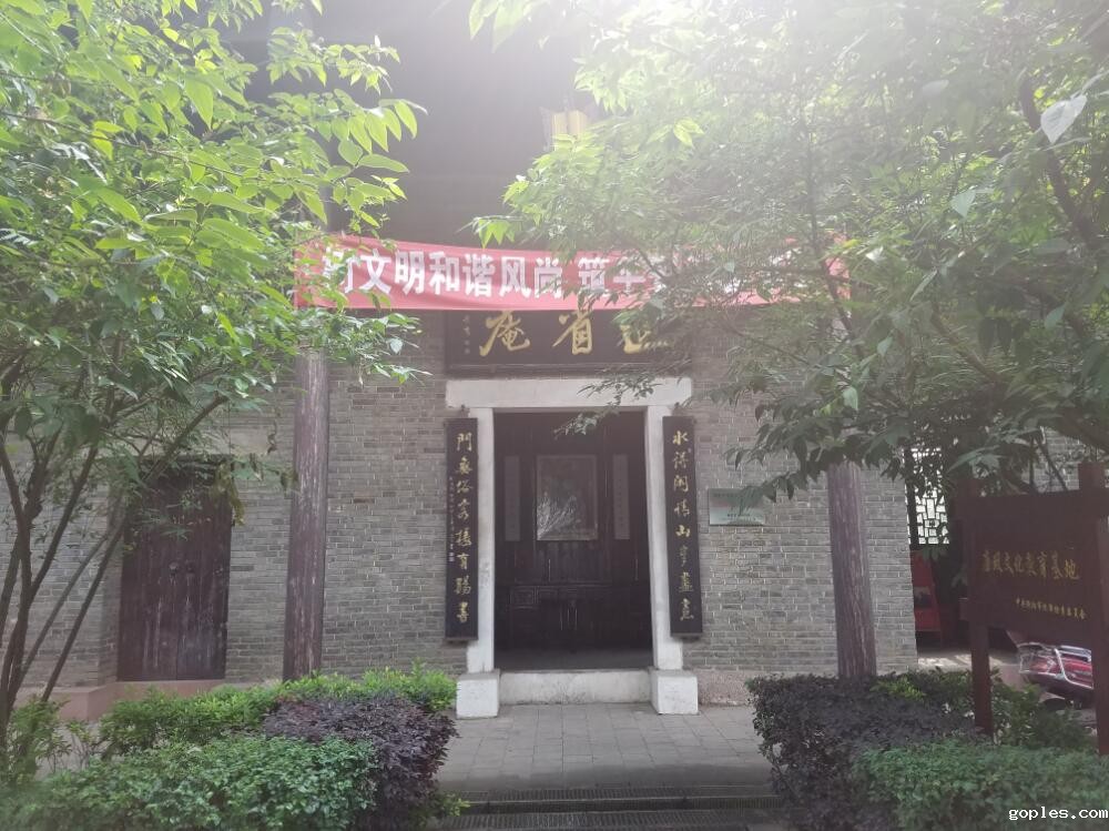 进入退省庵,正面的墙上持着一幅彭玉麟穿着官服的画像。画像旁挂一副对联:绝少五千柱腹撑肠书卷,只余一副忠君爱国心肝。这是他生前自拟的门联,概括了自己的本质,本为一介书生,柱腹撑肠的是众多的书籍,身经百战无畏生死,是因为心存爱国。北墙与右墙是分别是彭玉麟简介与年表。