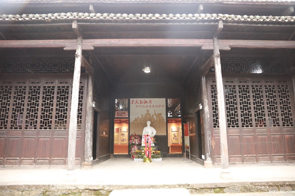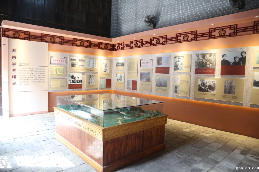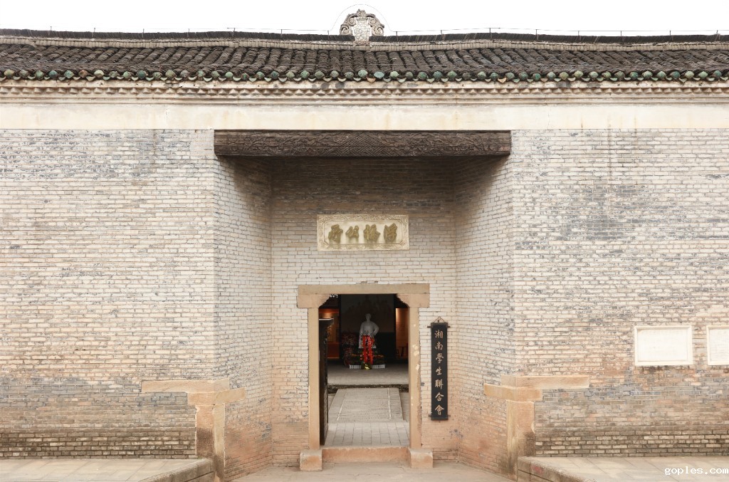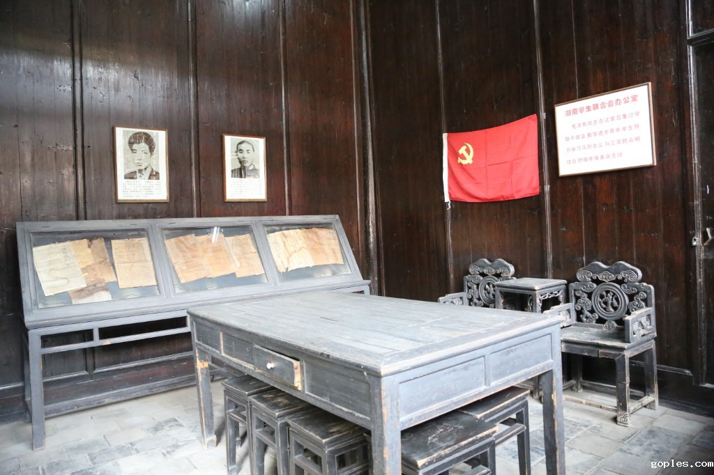 湘南学生联合会旧址,原为“浮桥公所”,为管理湘江浮桥的机构。它建于清光绪二十八年(1902年),平面布局为二进五开间前后天井,占地面积900m2,建筑面积700m2。砖木结构,青砖小青瓦,南北封火山墙,主体建筑为重檐硬山顶,开间隔墙均为木质柱梁枋和杉木板墙、雕花门窗、古朴典雅、保存十分完整。