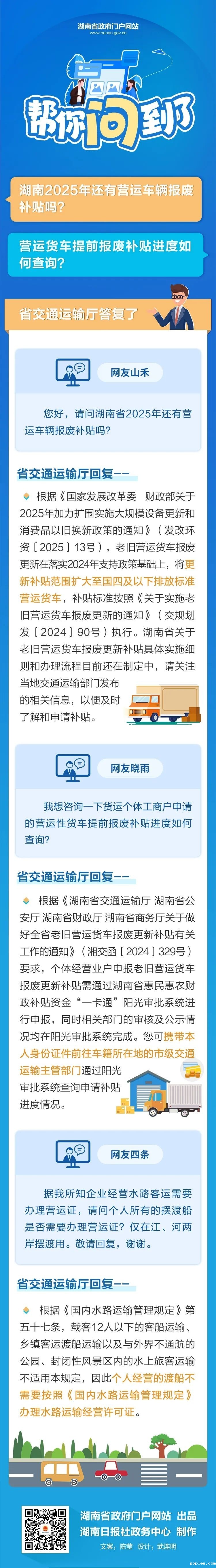 湖南2025年还有营运车辆报废补贴吗?帮你问到了!
