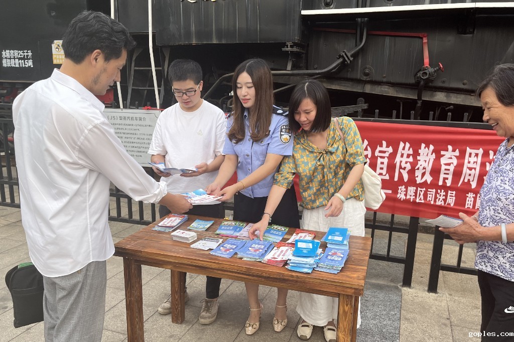 为深入宣传贯彻《未成年人保护法》、《预防未成年人犯罪法》,积极构建家庭、学校、社会“三位一体”的未成年人保护体系,9月21日下午,苗圃司法所在苗圃铁路文化广场开展青少年法治宣传教育周活动。