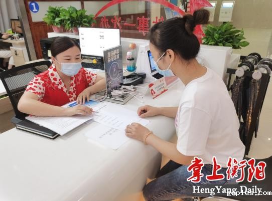 ▲符女士在政务服务大厅综合窗口办理业务