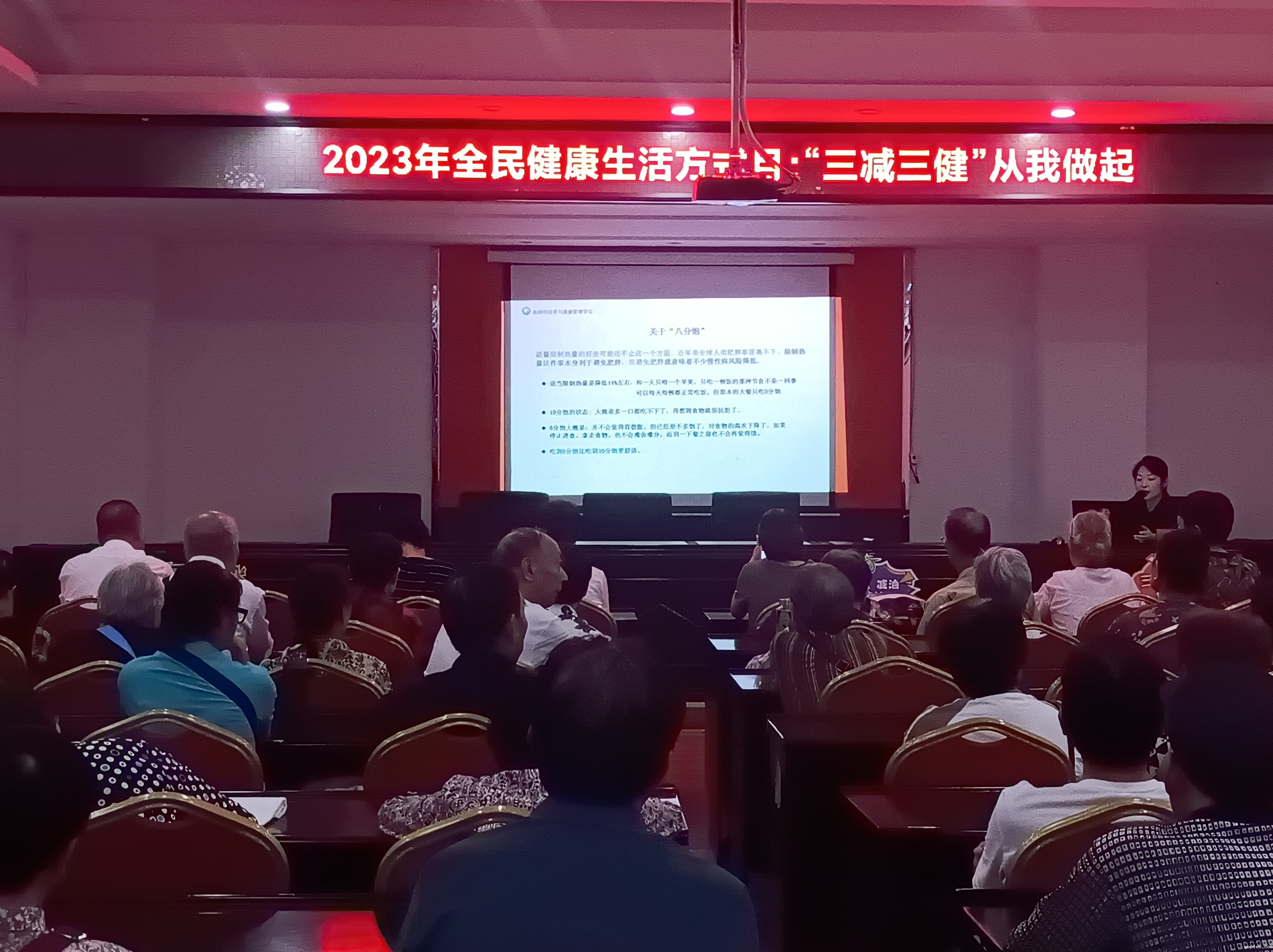 社区在二楼会议室举办"好好吃饭,健康享寿"讲座,邀请了衡阳市营养与健康管理学会副主任(临床营养)营养师向敏现场授课,向主任通过丰富事例的引用和形象生动地讲解,倡导居民在日常生活中做到"减盐、减油、减糖"的健康生活方式,切实提高自身身体素养。