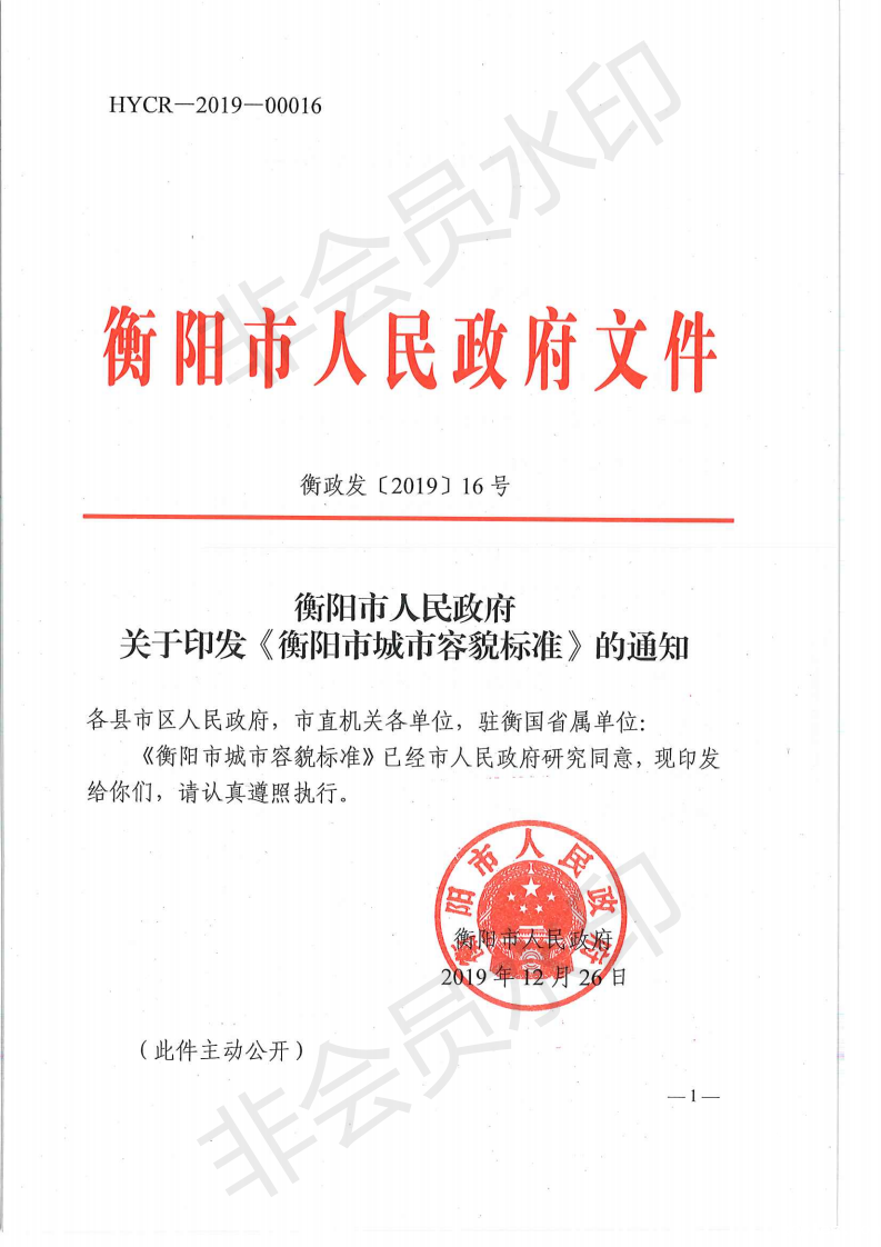 衡阳市人民政府关于印发《衡阳市城市容貌标准》的通知