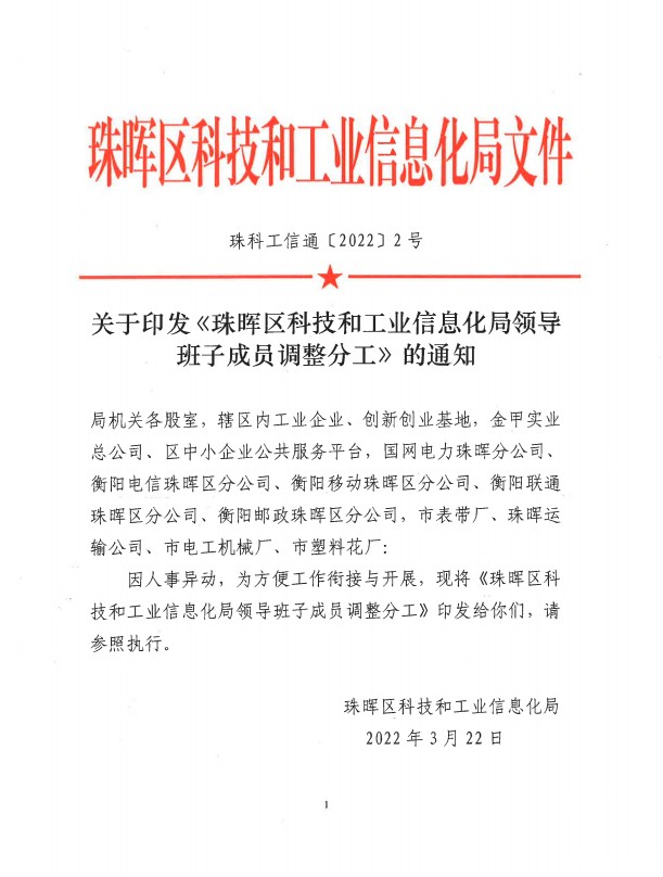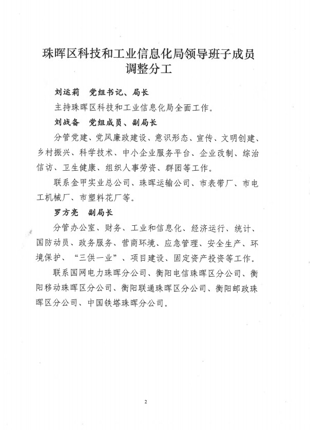 星空电竞app下载官网苹果版科技和工业信息化局领导班子成员调整分工