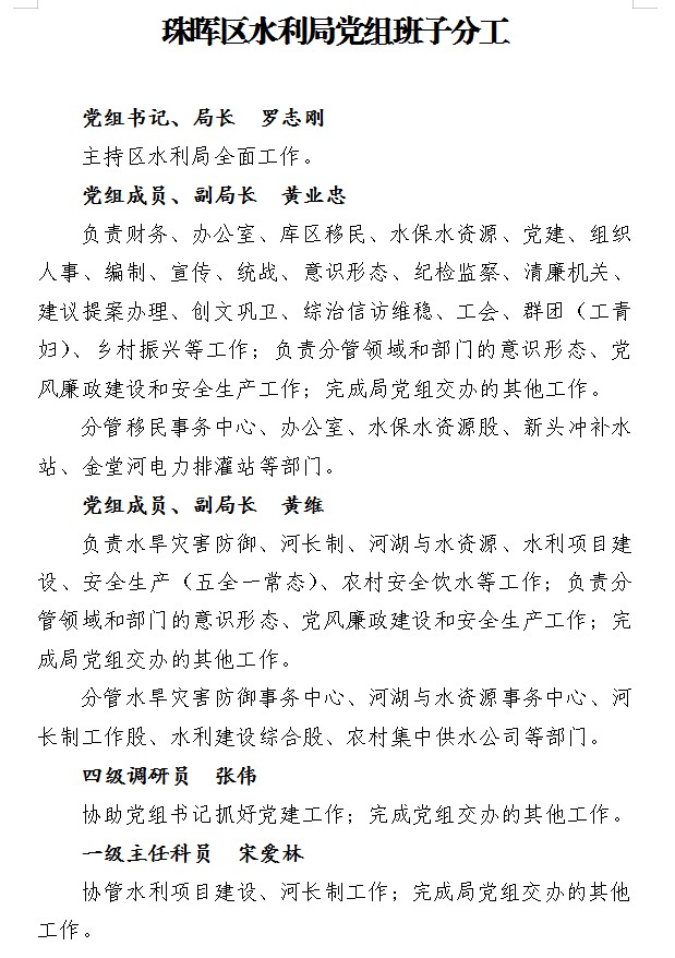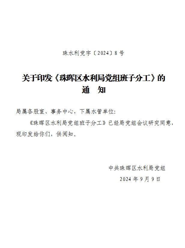 关于印发《星空电竞app下载官网苹果版水利局党组班子分工》的通知