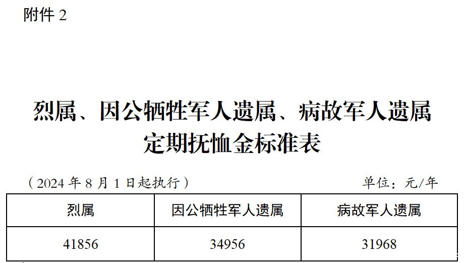 经研究,决定自2024年8月1日起调整部分优抚对象等人员抚恤和生活补助标准,现将有关问题通知如下: