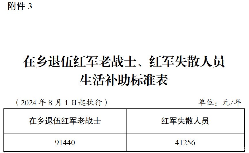 3.在乡退伍红军老战士、红军失散人员生活补助标准表