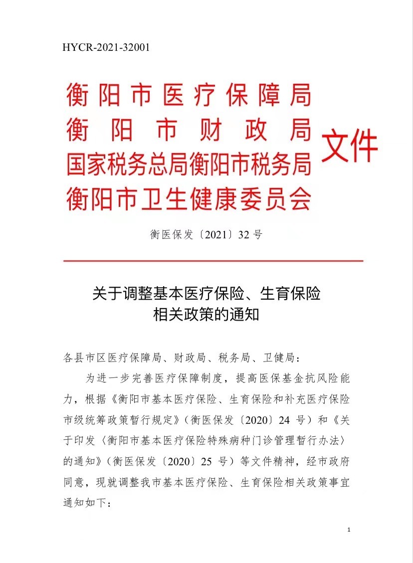 关于调整基本医疗保险、生育保险 相关政策的通知