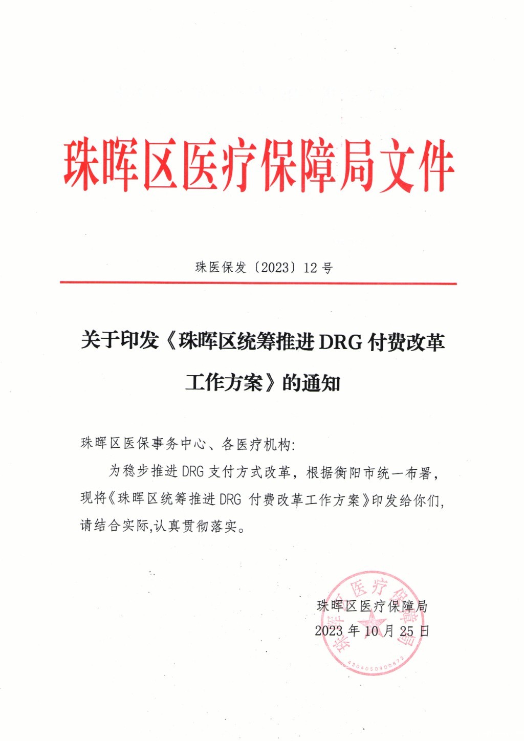 关于印发《星空电竞app下载官网苹果版统筹推进DRG付费改革工作方案》的通知
