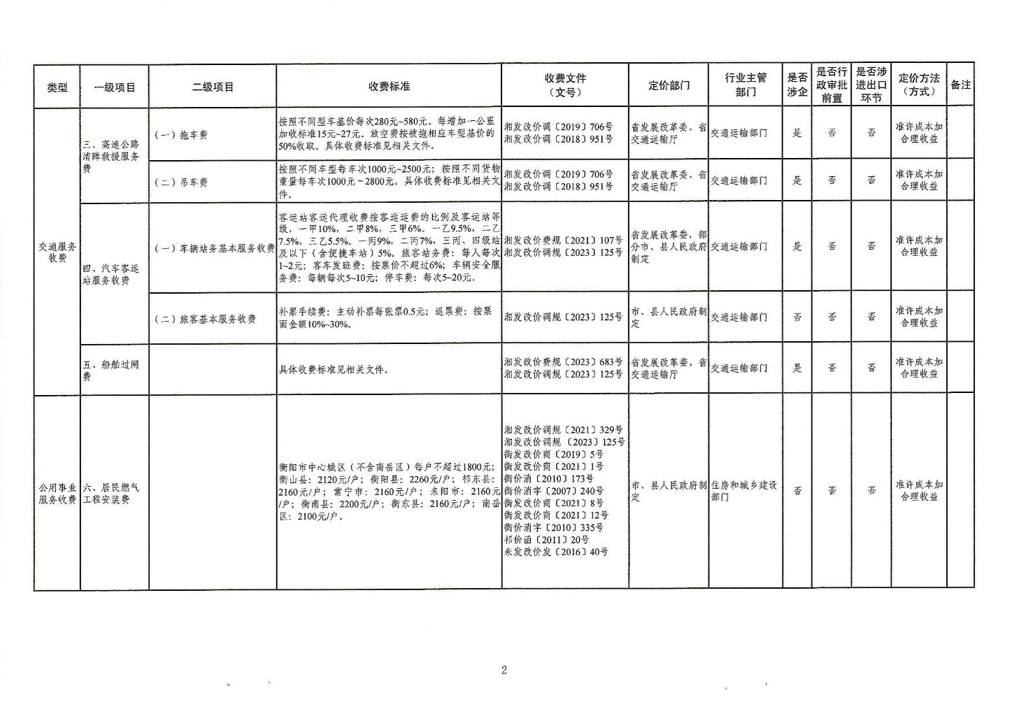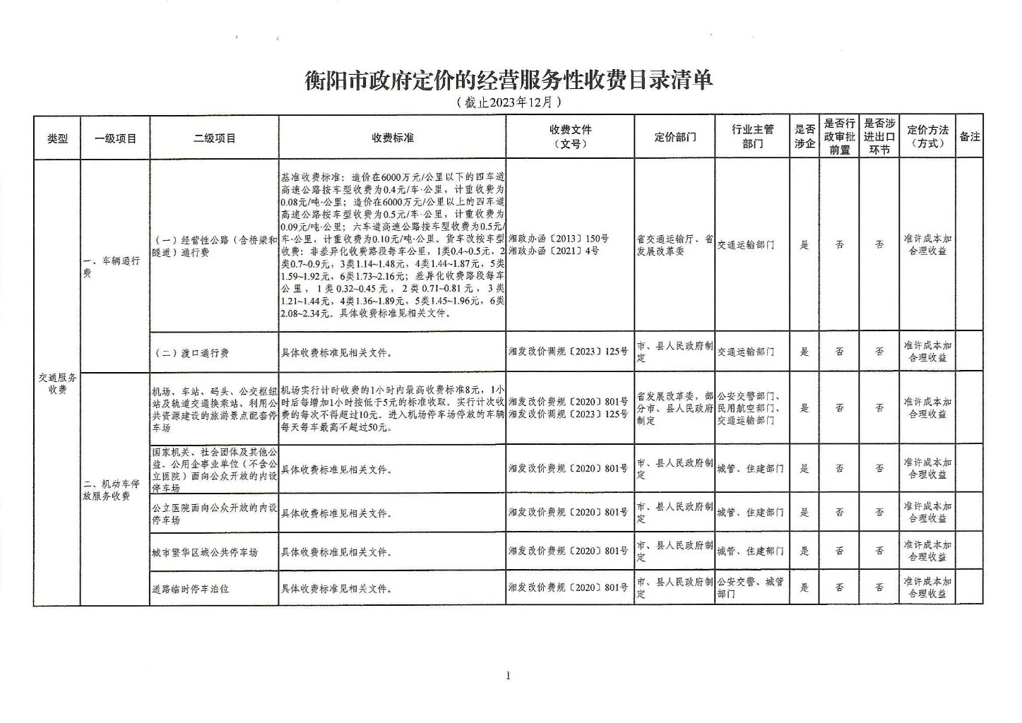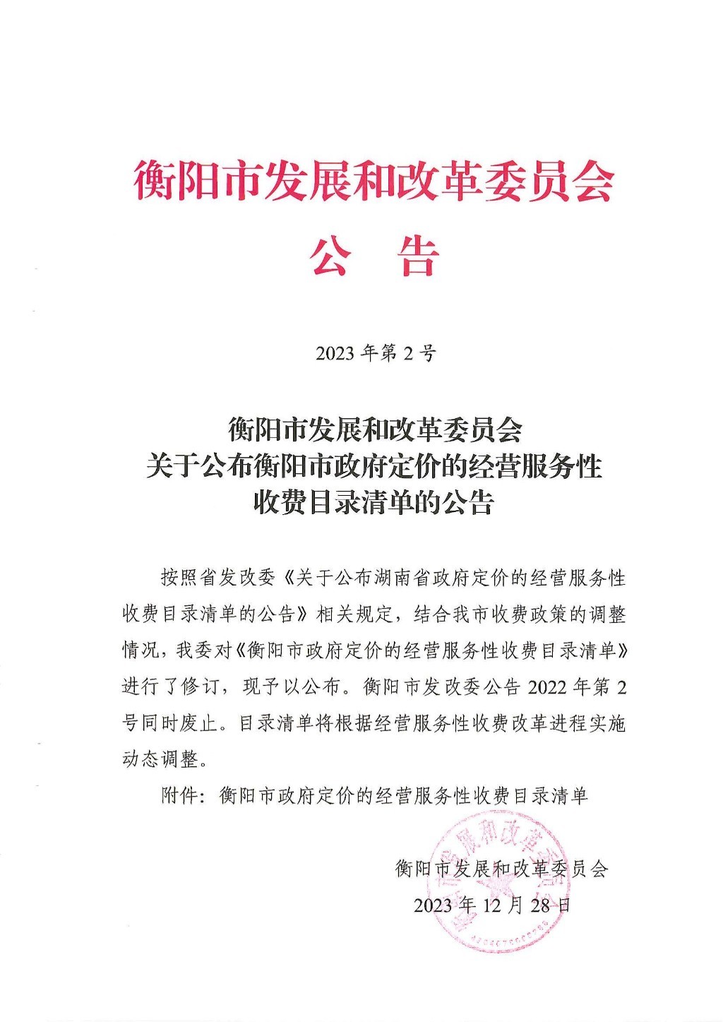 衡阳市发展和改革委员会关于公布衡阳市政府定价的经营服务性收费目录清单的公告
