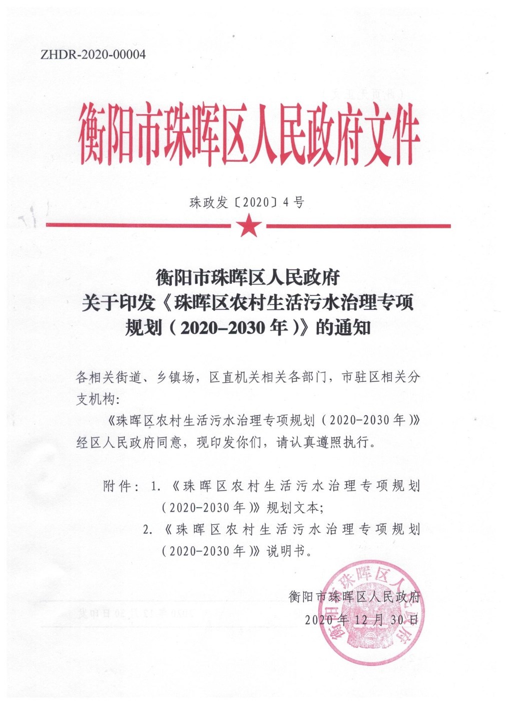 ZHDR-2020-00004 星空电竞app下载安装最新版关于印发《星空电竞app下载官网苹果版农村生活污水治理专项规划(2020-2030年)》的通知