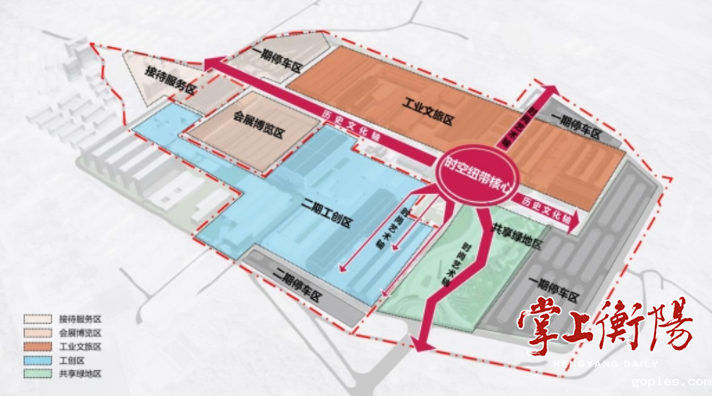 会展博览区:包括会议会展区及中国老工业基地文展馆。会议会展区结合现代工业风格,利用厂房的高大空间,植入工业设计博览会、工业设计论坛、社交电商峰会等多元博览会展功能;文展馆以“衡阳造”为主线,全面反映老工业基地建设成就、精神风貌,传承“衡阳造”背后的工业精神,全面展示“衡阳造”的实力和底气,打造具有全国影响力的老工业基地文化旅游精品。