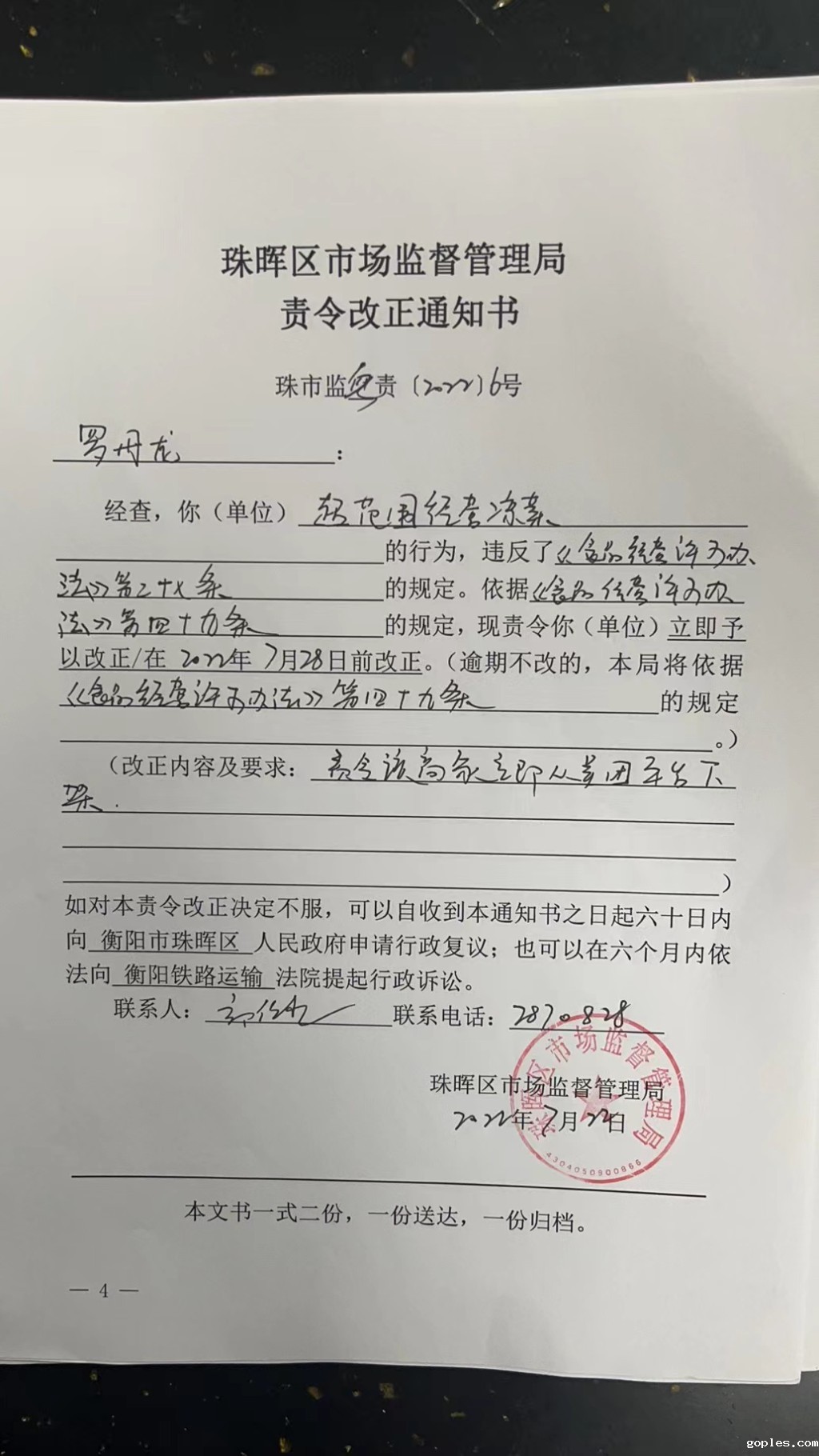 星空电竞app下载官网苹果版市场监督管理局责令改正通知书(珠市监粤责〔2022〕6号)