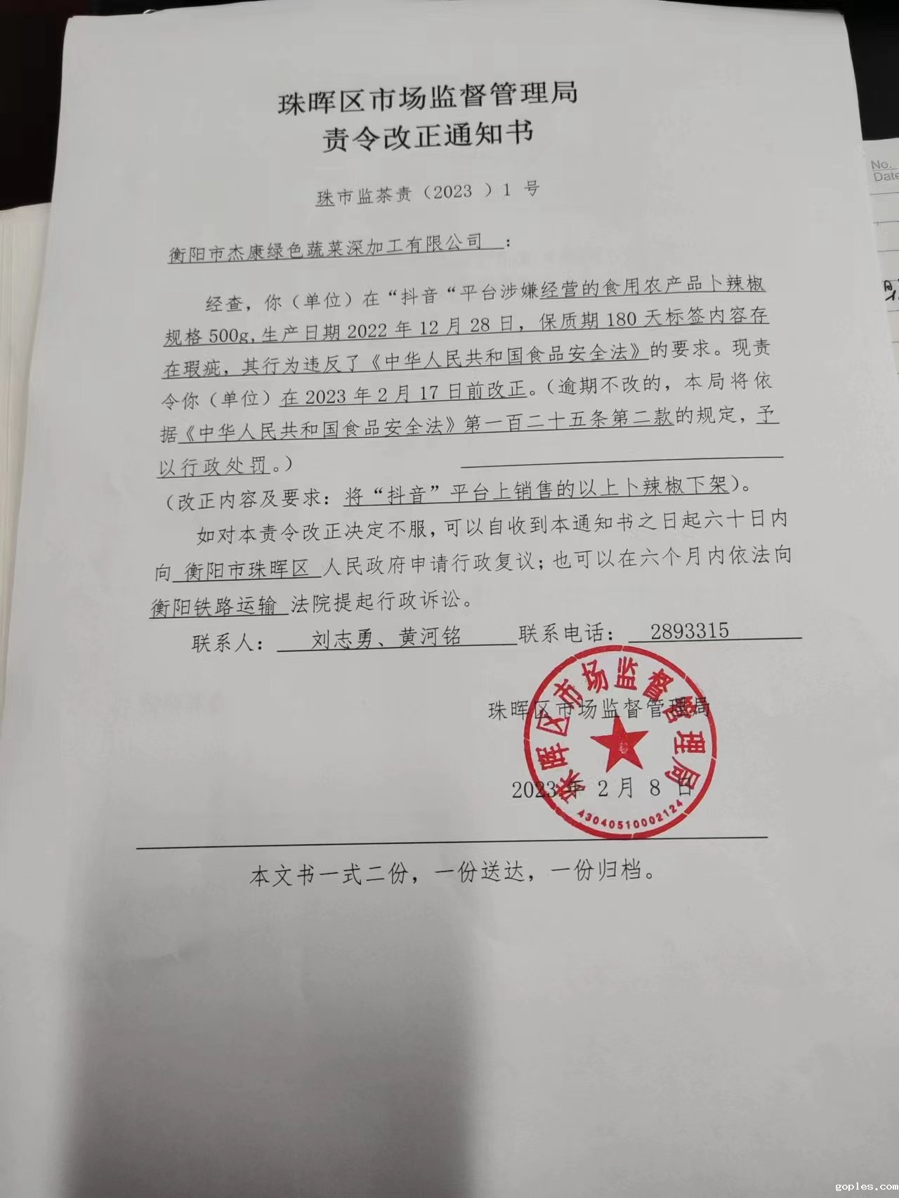 星空电竞app下载官网苹果版市场监督管理局责令改正通知书(珠市监茶责〔2023〕1号)
