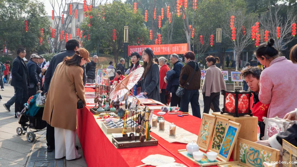 活动现场,为展现珠晖鲜活多彩的文化艺术元素,“春联入万家”“非遗过大年”“赏年画过大年”等展台在广场前一字排开,展台前人头攒动,喜庆春联,糖画泥人、剪纸香包等充满年味的物品增添了节日的欢快气氛。