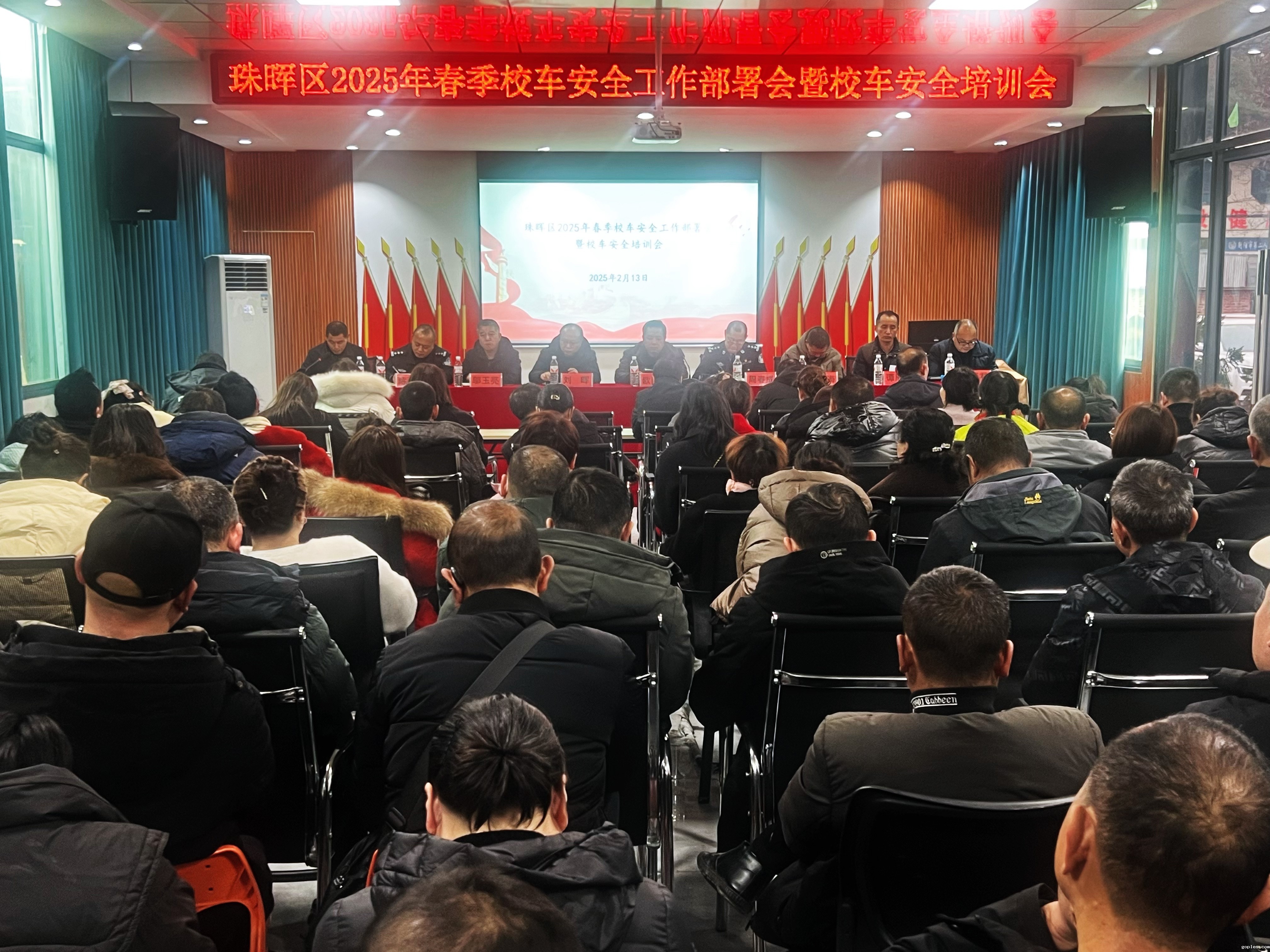 2月13日上午,珠晖教育局联合相关部门在朝晖校车公司会议室召开2025年春季校车安全工作部署会暨校车安全培训会。市教育局综治科、市教育局校车办、珠晖交警大队、区交通运输局、区应急管理局、区教育局、区校车办的领导及配备校车的学校、幼儿园、校车公司校车驾驶员,共计100余人参加会议。